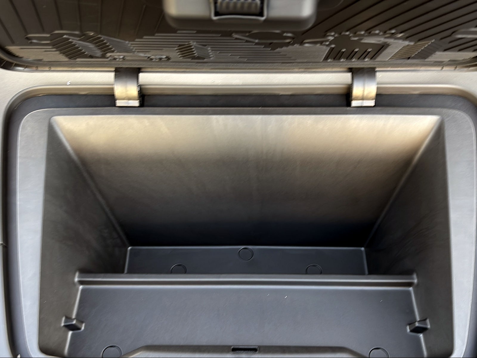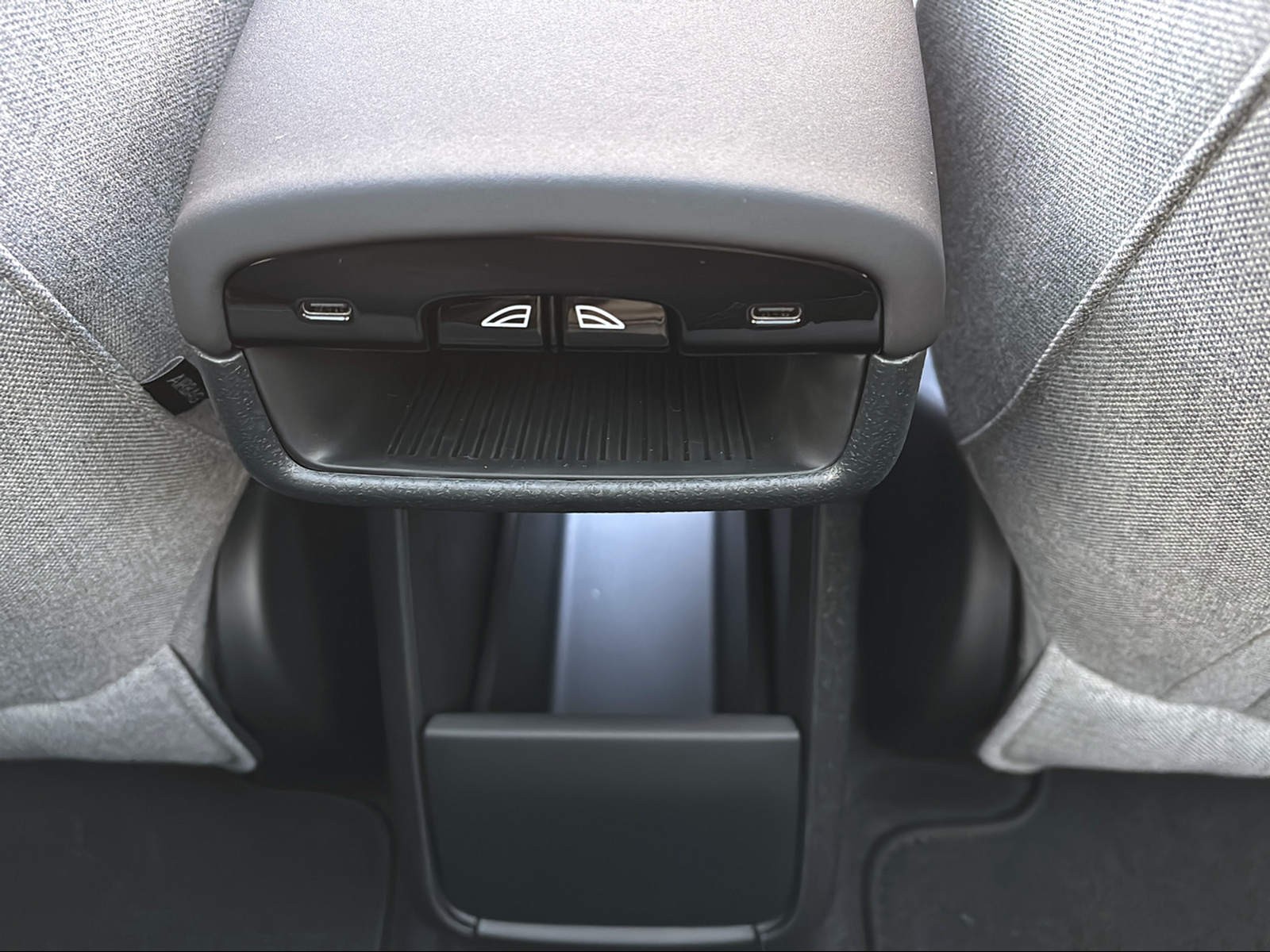 • Mittelarmlehne vorne mit integriertem Staufach und Getränkehaltern