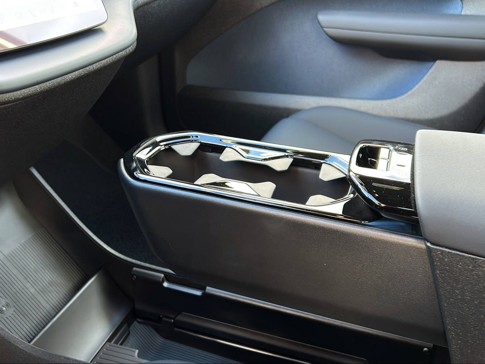 • Mittelarmlehne vorne mit integriertem Staufach und Getränkehaltern